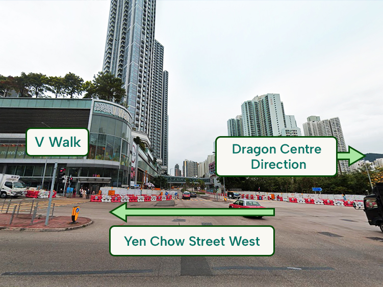 1 Walk from Sham Shui Po along Yen Chow Street West to V Walk.